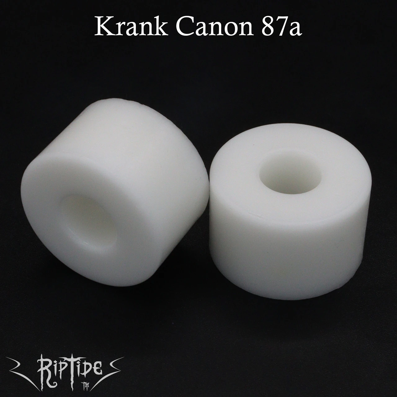 Excellent when used as a Double Canon combo – but incredibly fun and variable when used in the Roadside position in combo with other shapes & or duro’s in the Boardside position. (All shapes & sizes of RipTide Bushings are available in the KranK formula!)
