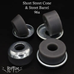 The Krank Short Street Cone & Street Barrel 4 Pack Skateboard Bushings are sold in 2 Pairs with a sticker and 2 Small Cup Washers & 2 Large Cup Washers are included. Sized to fit properly in conventional “Indy-style” trucks.