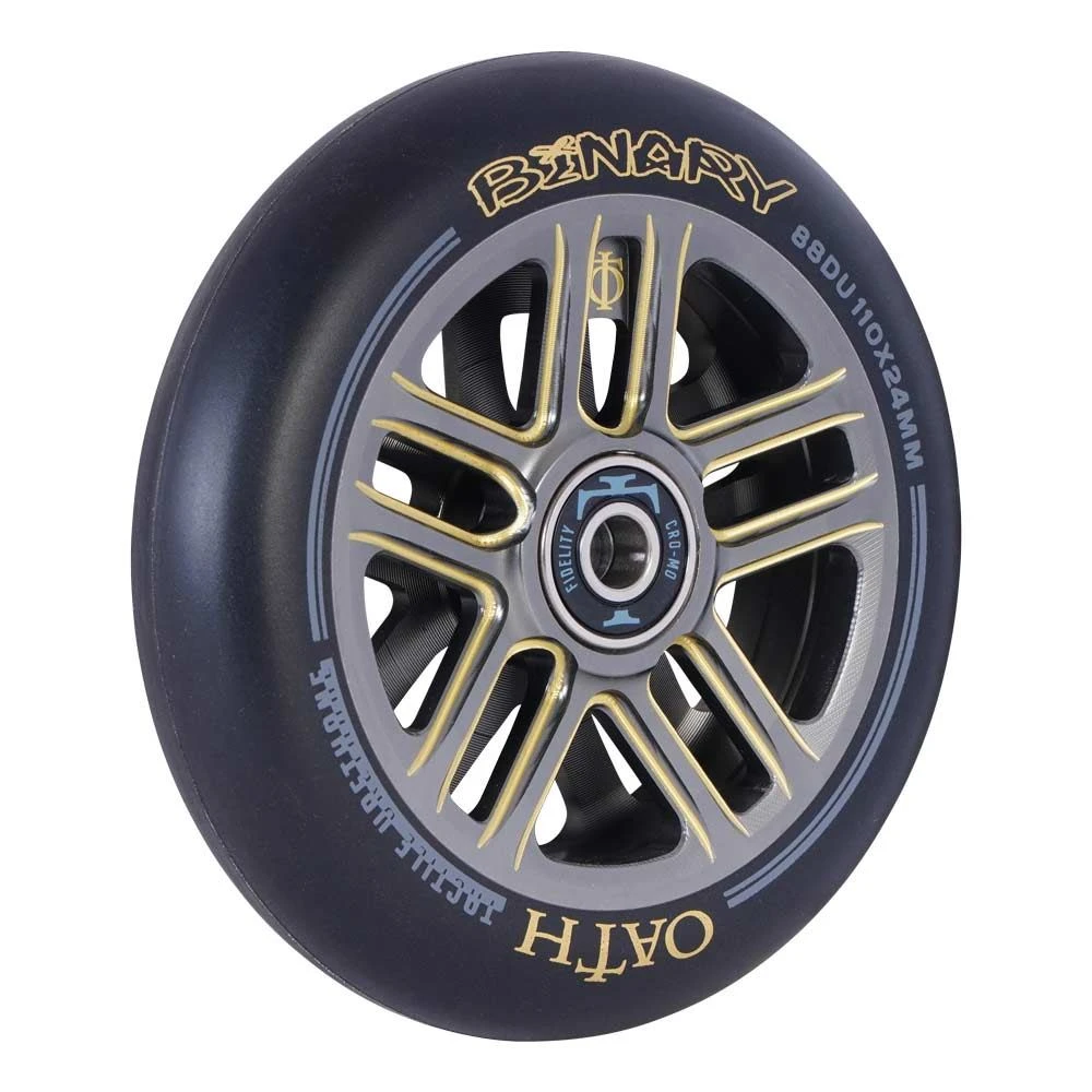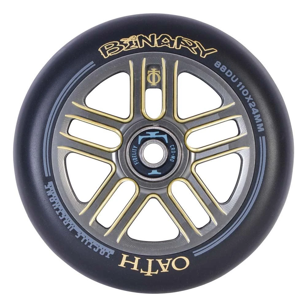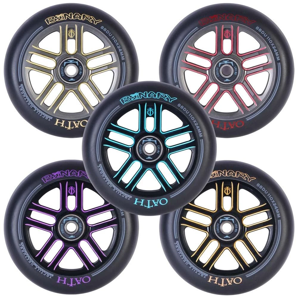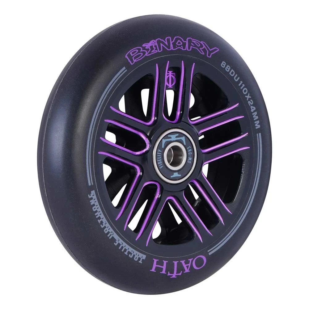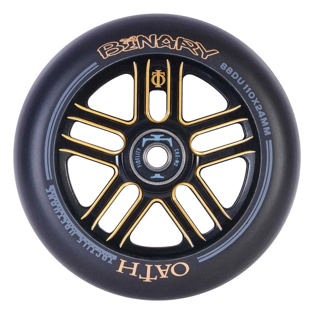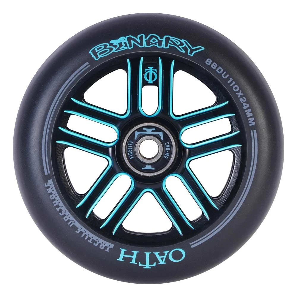 The Oath Binary wheel is a twin star, light weight hollow core design. It has a recessed core to allow for a deeper, taller urethane that gives a plusher cushioned feel on those big drops. Fitted with our high grade Oath Fidelity bearings, with the right blend and speed and durability.