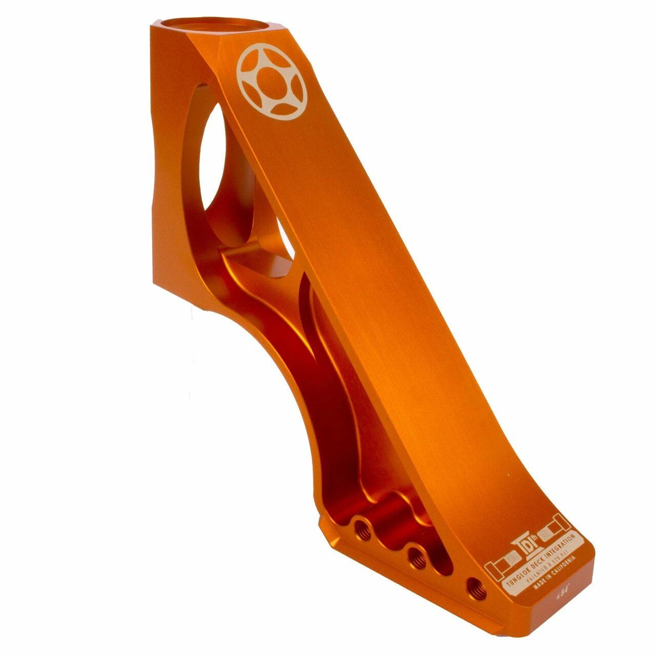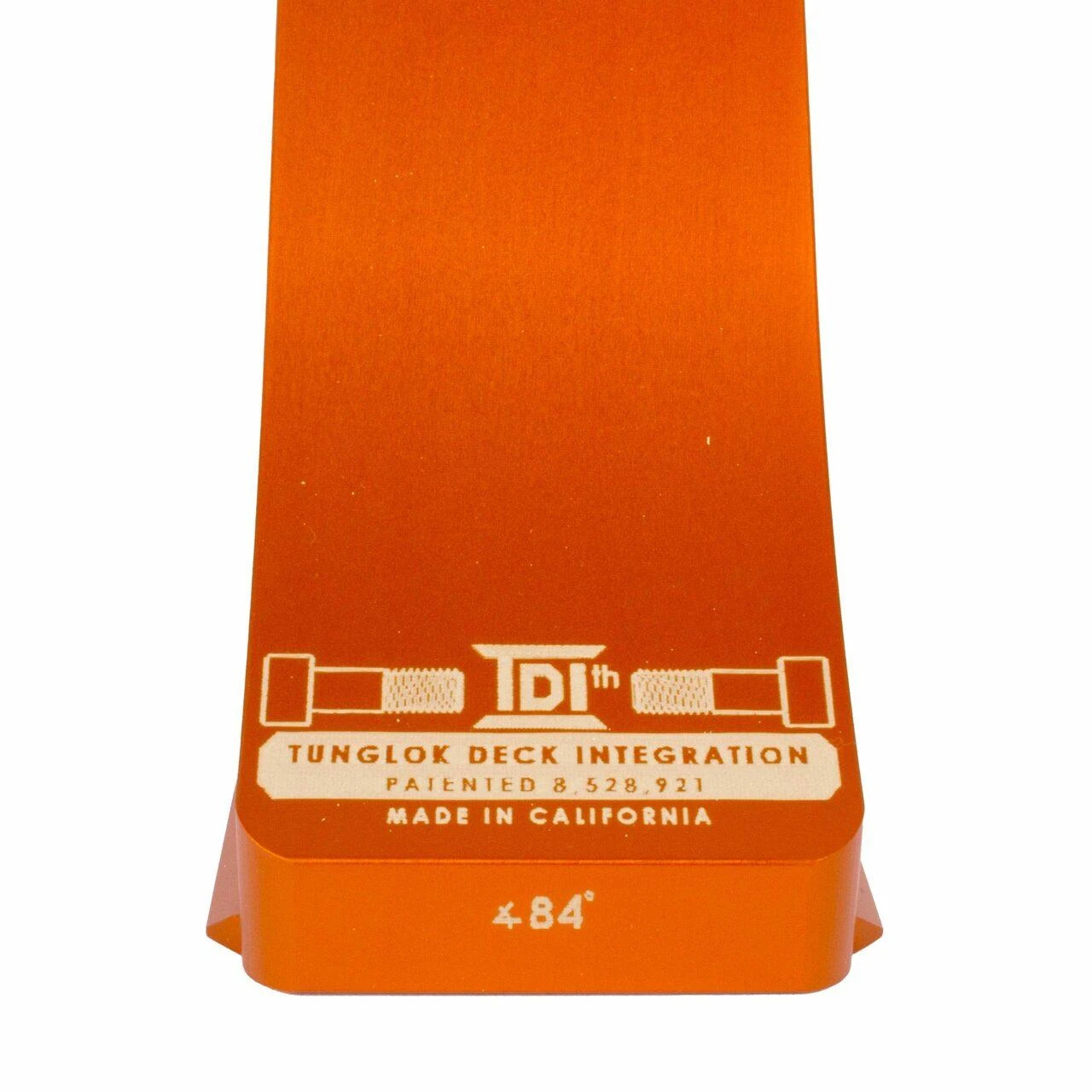 With improved geometry, everything about this neck has been updated. The headtube is now nearly half an inch shorter than it’s predecessor allowing for a full 1.5″ of fork clamping in your SCS with most standard length forks. An 84* headtube angle gives you more handlebar clearance to ride taller and wider bars and increases comfort and pop. The nose blunt area of the OrionTH Neck has been pulled back inside of the Deck Plate to reinforce and protect the areas most commonly impacted during nose blunts, crooks and smith grinds. The tail of the neck that sits inside the Deck now has a slight radius on the bottom to soften the rear corners to allow more flex to reduce the possibility of the neck piercing through the Deck extrusion under heavy impacts. Most notably, the OrionTH Neck features the biggest update in TDI history with the debut of the new TDIth (THreaded) Hardware, creating the tightest fitting, strongest Neck/Deck assembly to date.