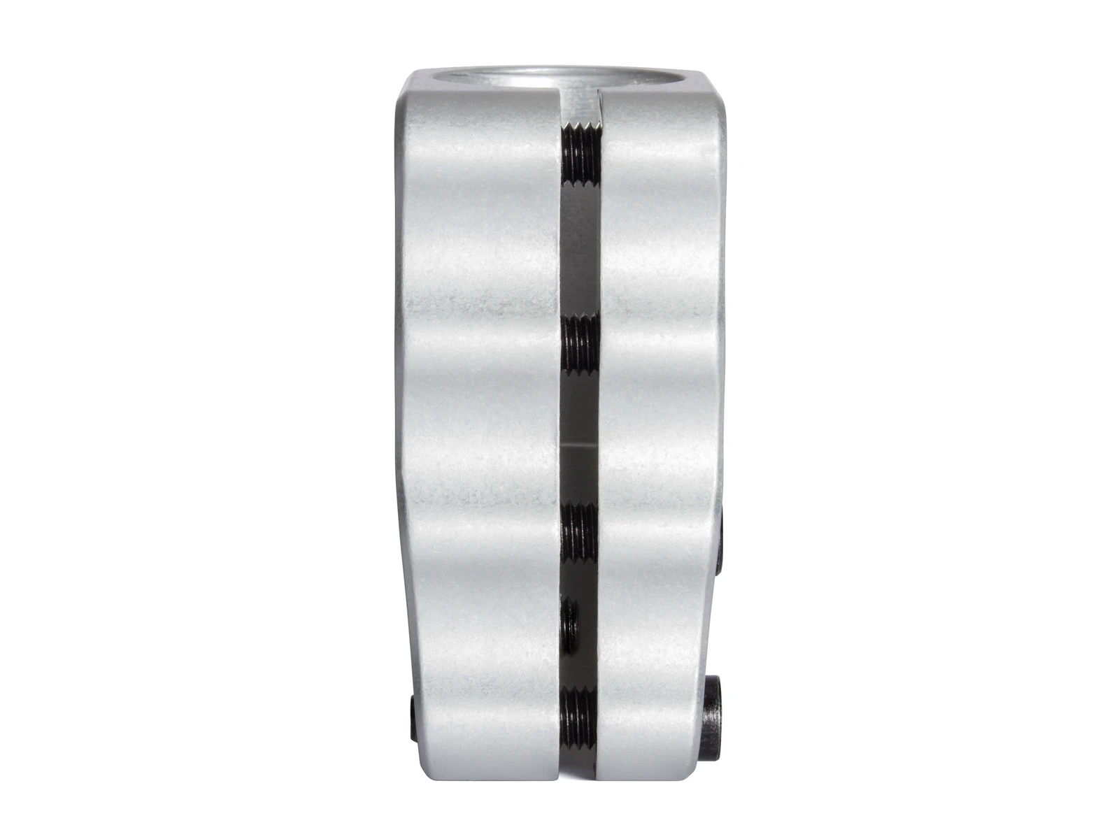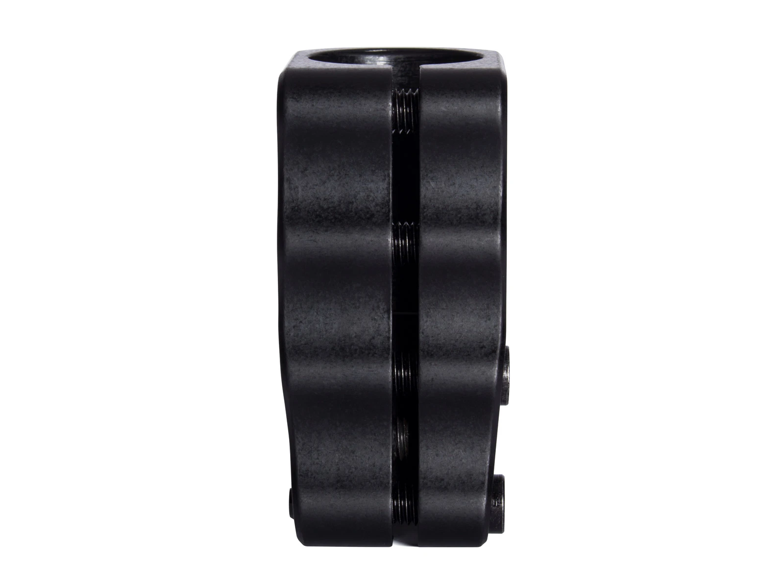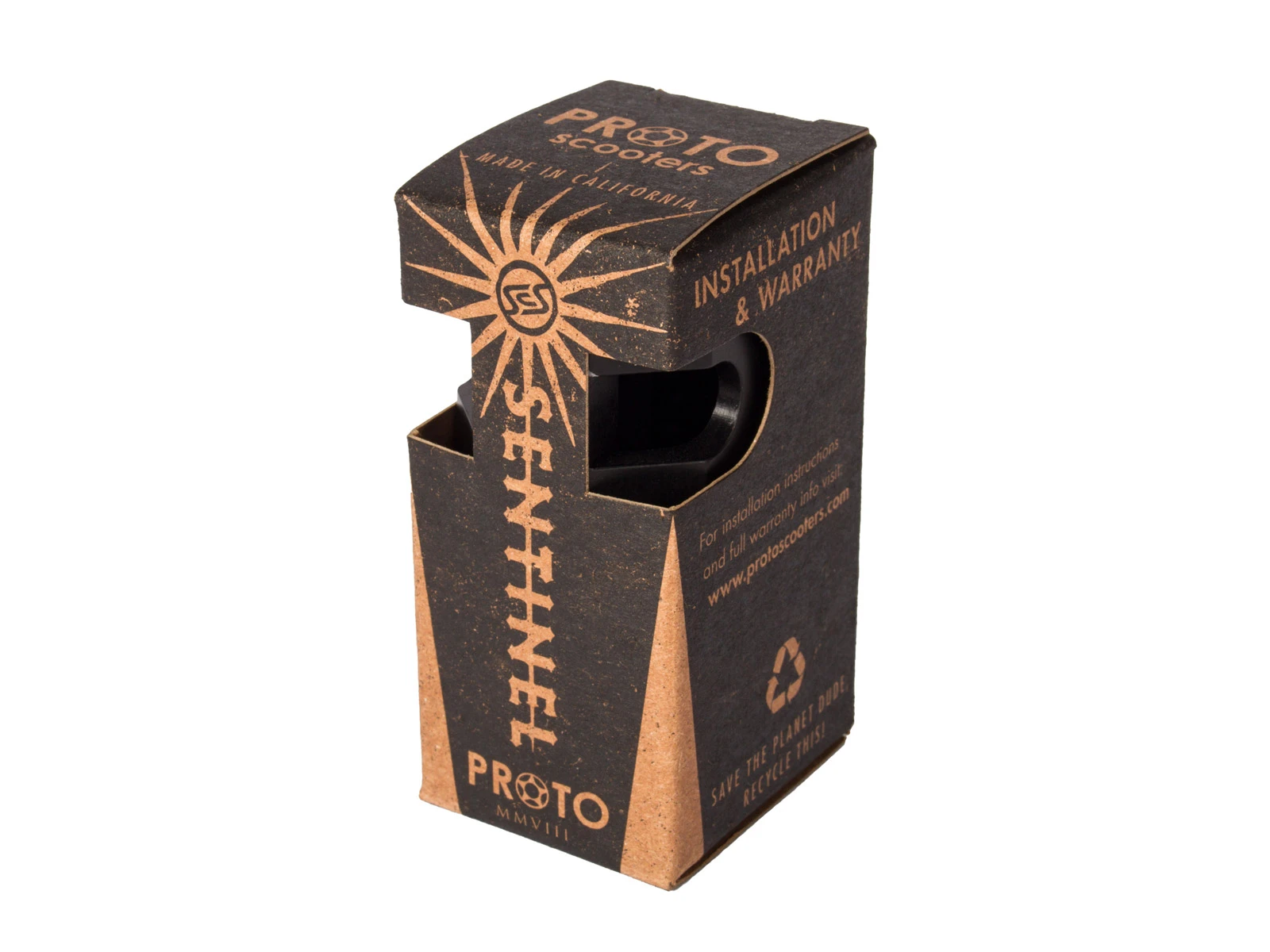 Eight years after inventing the world’s first and best Standard Compression System™ (SCS™), PROTO is proud to introduce the next generation of SCS™. The Sentinel SCS™ is the most technically advanced Standard Compression System™ ever created. Coming in at 3.5″ tall, it offers a full 2″ of handlebar support to accommodate the taller bars we are seeing become more prominent which is over 30% more support than a 3″ SCS™. It also features larger 8mm bolts with 6mm allen drives and an offset slot providing 25% more threads for the new larger hardware to tighten into allowing for increased torque and decreased chance of stripping giving it the ability to stay tighter, longer than any other SCS™ on the market. To top it off, despite being half an inch taller, increased weight was not an issue with its tapered top and base and two cutouts that removed unnecessary material and weight. There is also a brand-new feature called the Spreader-Bolt which can be used opposite of the 4 main clamp bolts to open the clamp for easy installation and removal, totally eliminating the need for the “penny trick”. The SCS™ logo is placed symbolically as the “third-eye” of the Sentinel in the center of a crown of thorns representing enlightenment and salvation from the ways of the past and guarding the future of scooter design.